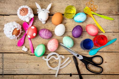 Flatlay Basteln An Ostern Viele Bastelutensilien