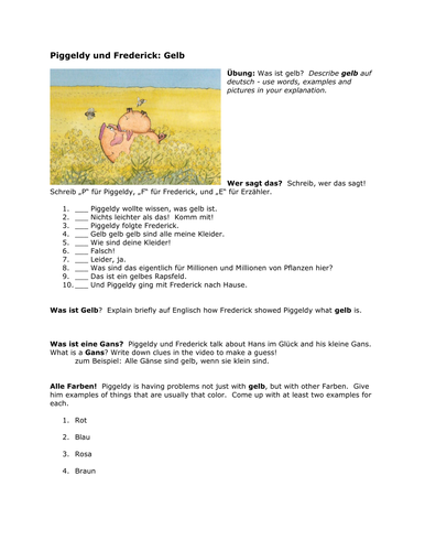 Piggeldy Und Frederick Gelb By Frauleonard Teaching Resources