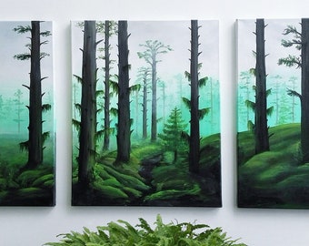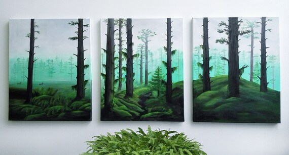 Leinwand Druck Von Wald Malerei Baum Druck Auf Leinwand Etsy