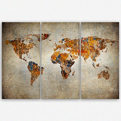 Xxl Kunstdruck 3 Teilig Wand Bilder Bunte Weltkarte Auf