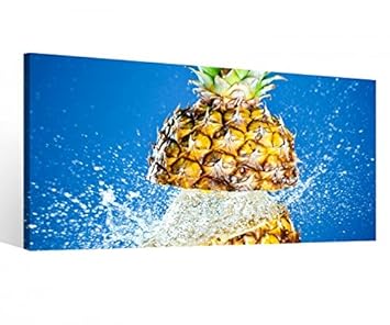 Leinwandbild 1 Tlg Ananas Geteilt Wasser Splash Blau Kuche